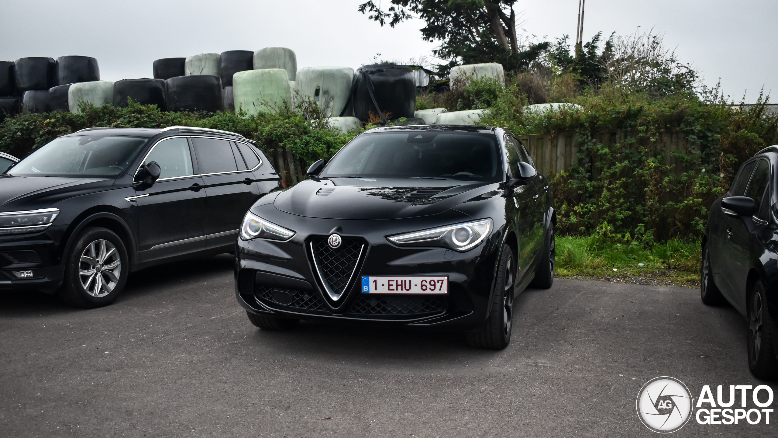 Belgische Stelvio bij een Nederlandse kaasboerderij. Een fel kleurtje zoals rood of groen staat deze Italiaanse SUV wel iets beter dan dit.